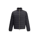 Versace’s Down Jacket features a high collar and a double-slider front zipper closure for convenience and protection. Featuring two buttoned welt side pockets, it combines functionality and elegance. The design is embellished with the iconic baroque weave, a distinctive symbol of the brand, which gives a bold and sophisticated touch. Completing the garment is an adjustable drawstring hem, which allows you to adjust the fit as needed.
