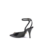 Versace’s Medusa Décolleté is an elegant and bold slingback made of patent calfskin with a tapered toe. The sleek stiletto heel enhances femininity, while the iconic La Medusa accessory on the upper adds a distinctive and recognizable touch, symbolizing the brand’s unmistakable signature.