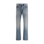 Versace’s cotton Jeans combine classic design with the Maison’s iconic codes. They feature a front zipper and button closure, belt loops at the waist and a traditional five-pocket pattern. On the front, a metallic detail with the Medusa head, the brand’s distinctive symbol, stands out on the breast pocket, while a logoed leather patch is applied on the back. A garment with a strong character, perfect for elevating everyday looks with a touch of bold luxury.