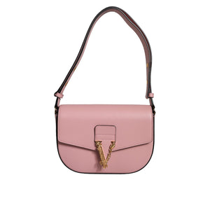 Versace Pink Grainy Calf Leather Logo Crossbody Shoulder Bag