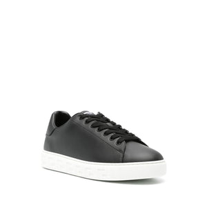 White/black, Faux leather, embossed Greca detail, logo patch on the tongue, branded heel counter, tone-on-tone stitching, round toe, front lace-up closure, padded ankle, branded insole, flat rubber sole. Greca leather sneakers Size and Fit - Heel 1,2 in / 3 cm; Platform 1,2 in / 3 cm