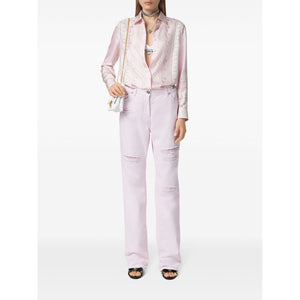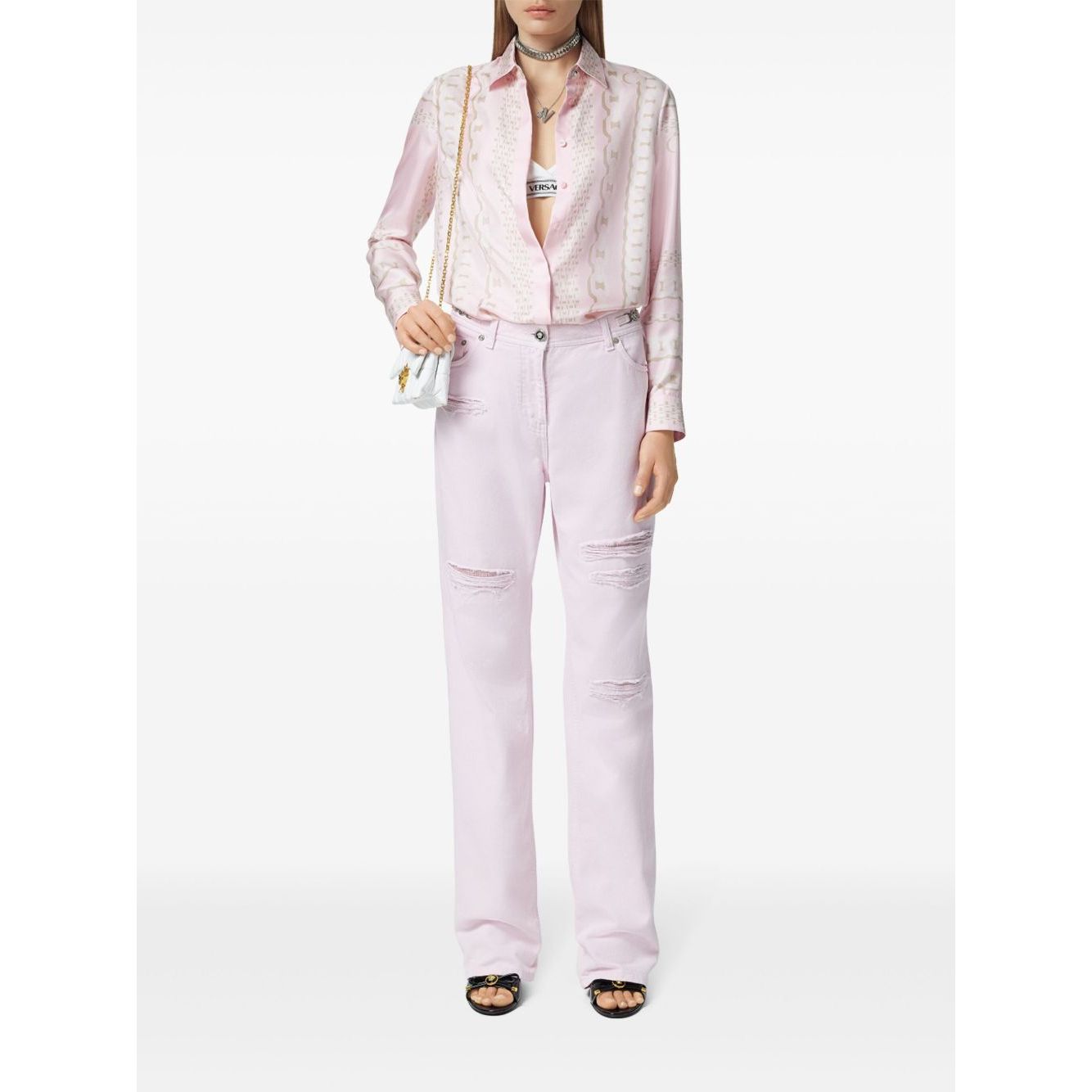 light pink front button fastening classic collar long sleeves buttoned cuffs Versace Treasure silk shirt Size and Fit - This piece fits true to size. We recommend you get your regular size. Model is 1,75m / 5ft 8in wearing size 40 (IT)