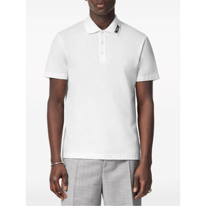 white short sleeves polo collar front button fastening straight hem logo patch to the collar Logo piquet polo shirt Size and Fit - This piece fits true to size. We recommend you get your regular size. Model is 1,84m / 6ft 1in wearing size M