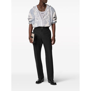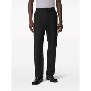 black cotton tailored design mid-rise embroidered logo front button fastening belt loops two side slit pockets two rear welt pockets straight leg Cotton trousers Size and Fit - This piece fits true to size. We recommend you get your regular size. Model is 1,84m / 6ft 1in wearing size 48 (IT)