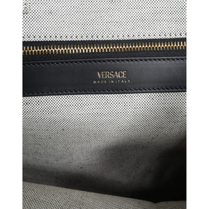 Versace White Top Handle Canvas Leather Logo Crossbody Tote Bag
