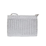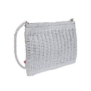 Yellow color, woven pattern, single compartment, internal pocket, zip closure, removable leather shoulder strap. Saba handbag Size and Fit - Width 13,78 in / 35 cm