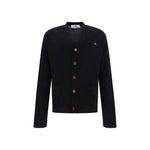Cotton Alex Cardigan by Vivienne Westwood, featuring V-neck front, front button closure, contrasting embroidered iconic brand logo, monochrome pattern, regular fit.