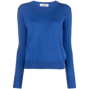Orb-embroidered cotton-cashmere jumper from VIVIENNE WESTWOOD featuring cobalt blue, cotton-cashmere blend, fine knit, crew neck, signature Orb logo embroidery, long sleeves, ribbed cuffs and hem and straight hem. We've partnered with Good On You — an independent agency that rates how brands perform in relation to their impact on the planet, people and animals, with a multi-criteria rating simplified to a five points scale. In order to be awarded our conscious label, larger brands need to score a minimum of four out of five ('Good'), while smaller brands must score at least three out of five ('It's A Start'). This item comes from a brand rated three out of five ('It's A Start') by Good on You. Please note, this is a brand-level rating and does not guarantee that this product is made with conscious materials.. Learn more about what makes a product Conscious on our Conscious Criteria page. Orb logo sweater Size and Fit - This piece fits true to size. We recommend you get your regular size. Model is 1,75m / 5ft 8in wearing size S