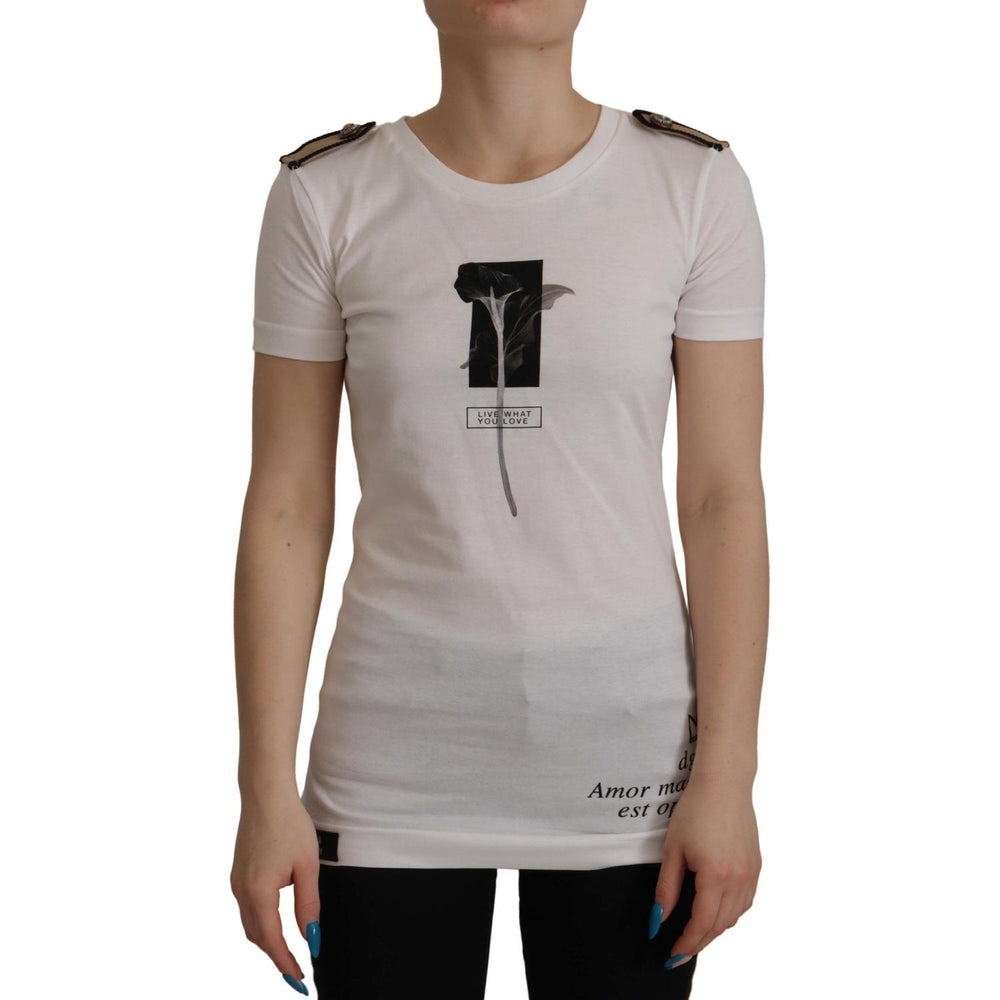 优雅花卉圆领棉质 T 恤