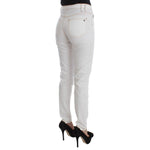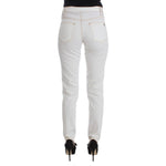 穿上这款出自著名 Cavalli 品牌的纯白色牛仔裤,走进优雅的殿堂。这款修身牛仔裤专为完美贴合您的曲线而设计,完美融合了奢华与舒适,采用优质棉和氨纶混纺面料剪裁而成,灵活贴合,可随您移动。这款牛仔裤采用精致细节设计,包括经典纽扣和拉链门襟以及精致的徽标装饰,是您精致衣橱的完美必备单品。
