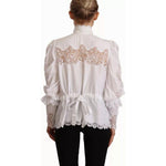 Dolce & Gabbana White Cotton Lace Trim Turtle Neck Blouse Top