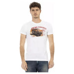 Trussardi Action 的这款短袖 T 恤完美融合了舒适感和时尚感。经典百搭,圆领,正面印花,为您的休闲装增添一丝精致感。采用优质棉粘胶混纺面料制成,透气性好,触感柔软,是您衣柜中不可或缺的单品。