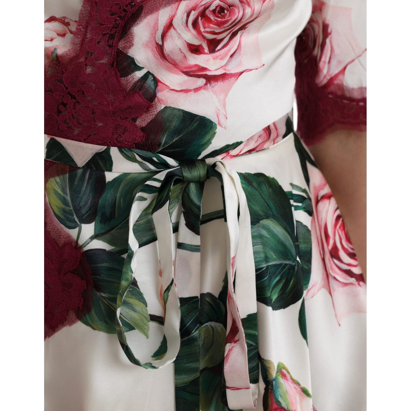 Dolce & Gabbana White Floral Lace Silk Short Sleeves Top