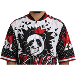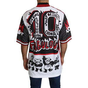 这款精美的 Dolce & Gabbana 白色 T 恤将奢华与现代风格完美融合,让您尽情享受。这款 T 恤饰有鲜艳的熊猫王印花,配有独特的拉链领,让您的休闲装更显精致。这款 T 恤在意大利制作,采用 98% 优质涤纶和 2% 柔软棉布,确保穿着舒适,是任何寻求在服装中融入设计师风格的挑剔绅士的完美之选。
