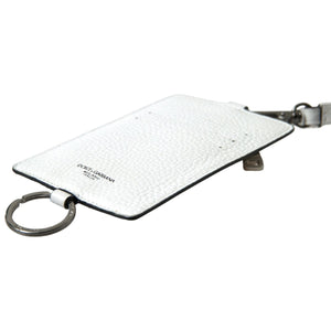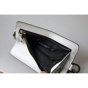 这款来自著名 Dolce & Gabbana 的纯白色皮革卡夹挂绳让您体验经典优雅。这款配饰采用意大利精湛工艺制作而成,不仅带有压印徽标的贴片,视觉效果十分抢眼,而且功能性极佳。它配有宽敞的侧拉链、安全环扣和充足的卡槽,可轻松整理您的必需品。无论是用于社交活动还是日常便利,这款卡夹都彰显了精致品味和奢华。