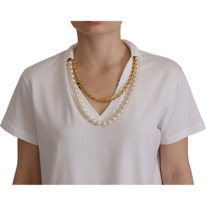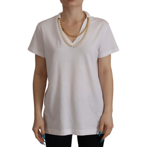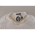 这款 Dolce & Gabbana T 恤全新精美,带标签,100% 正品,是您衣橱中的奢华单品。这款 T 恤采用 V 领设计,背面饰有优雅的项链,带有品牌标志,采用纯棉制成,既舒适又时尚。意大利制造,与品牌标志性美学相呼应。