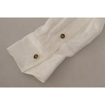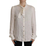Dolce & Gabbana White Patterned Silk Ascot Collar Blouse Top