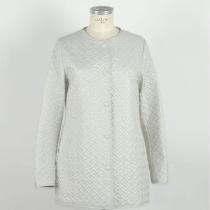 Emilio Romanelli 的白色夹克完美融合了时尚与实用,让您领略精致的精髓。这款夹克专为现代女性设计,采用按扣闭合设计,彰显轻松优雅。两个外部口袋和一个额外的内部口袋可让您随身携带必需品,长袖设计则可提供额外的舒适感和保护。