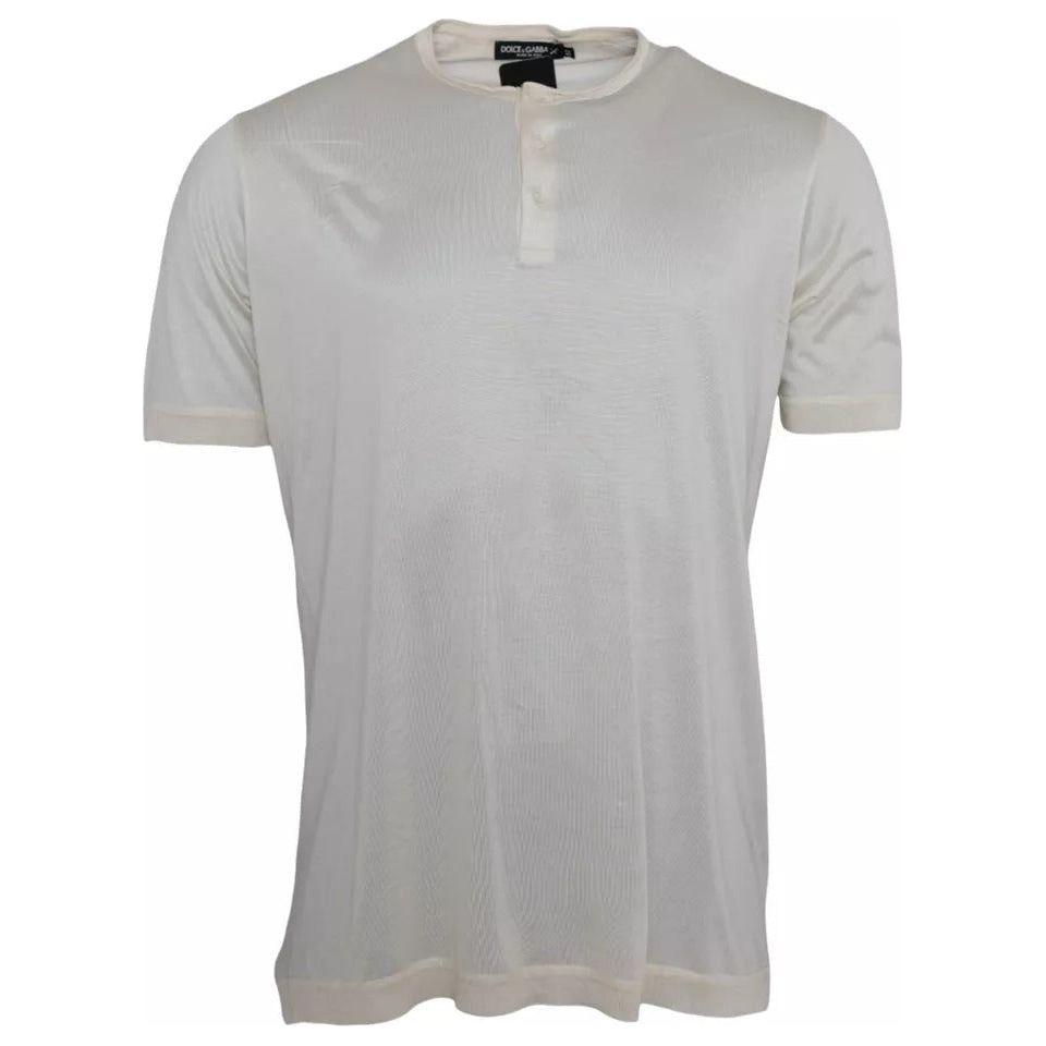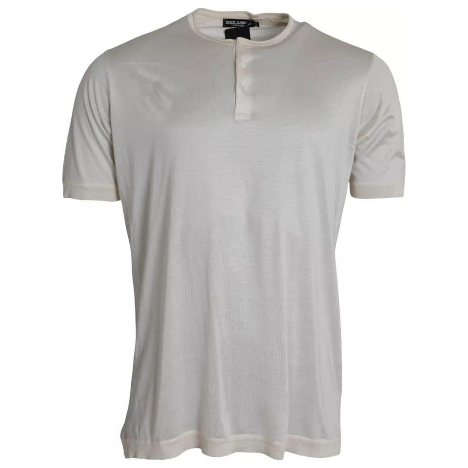 Dolce & Gabbana White Short Button Closure Silk Top T-shirt