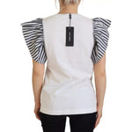Dolce & Gabbana White Striped Short Sleeves Pullover Top