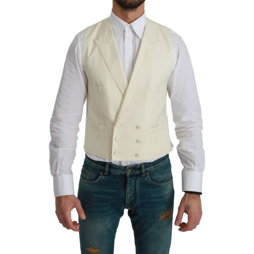 这款来自著名 Dolce & Gabbana 的奶油色米白色正装背心让您步入精致的殿堂。这款背心散发着优雅和无与伦比的品质,是任何男士正装衣橱的必备单品。这款背心在意大利精心制作,采用 100% 纯羊毛材料,确保奢华舒适和永恒风格。它非常适合特殊场合或提升您的商务着装,采用经典的三纽扣前开合和精致的标志细节,彰显设计师的卓越品质。