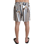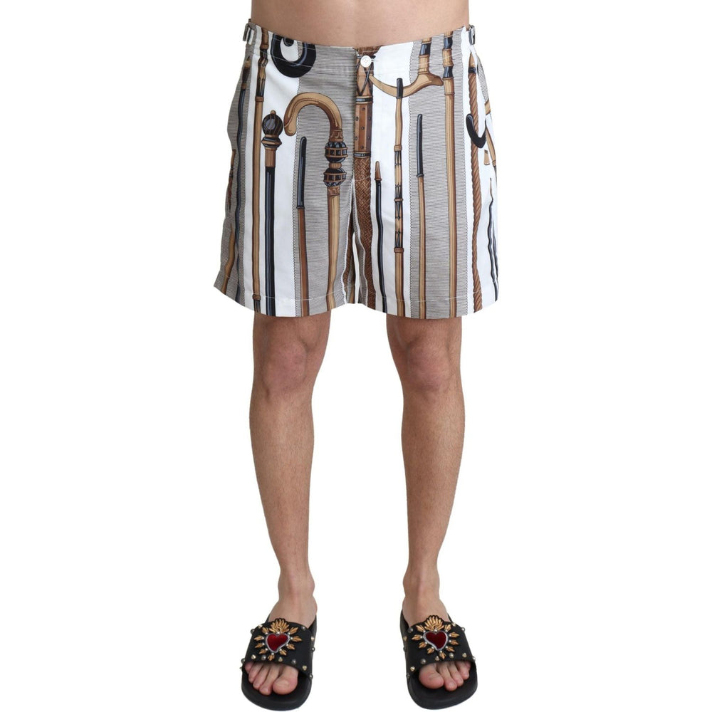穿上这款 Dolce & Gabbana 优雅的白色多色泳裤,优雅地步入夏日。专为那些注重细节和奢华感的人设计,即使在海滩也是如此。这款泳裤采用鲜艳的皇家手杖印花,确保您以贵族气质脱颖而出。两个前袋和一个带拉链封口的安全后袋兼具时尚感和实用性。