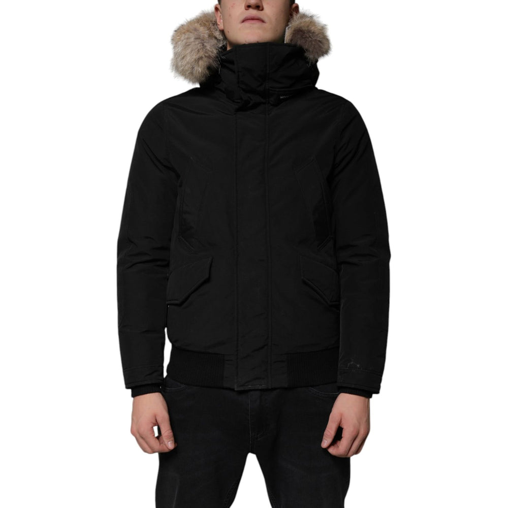 Woolrich Black Hooded Long Sleeves Fur Shearling Coat Jacket