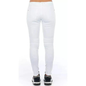 时尚机车风白色弹力牛仔裤