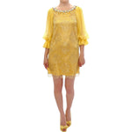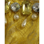 黄色蕾丝水晶缀饰迷你连衣裙