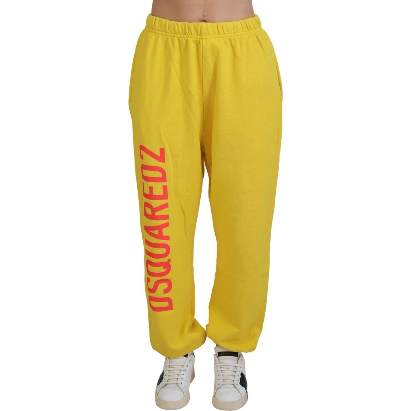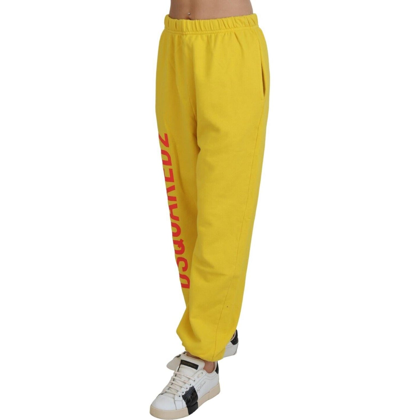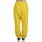 黄色中腰徽标印花慢跑长裤