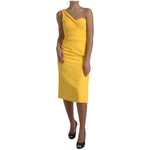 Dolce & Gabbana Yellow One Shoulder Side Slit Midi Dress