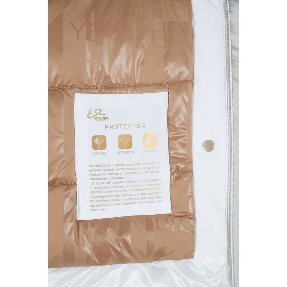 Elevate your outerwear collection with the luxurious Yes Zee women’s jacket. A blend of style and functionality, its technical fabric ensures durability, while the real goose down filling provides unmatched warmth. With a plush hood fur trim and sleek front zipper and button closure, this jacket merges practicality with high fashion. Ample storage is discreetly designed with inside pockets and secure zippered side pockets. Dare to dazzle in this pristine white piece that exudes both comfort and elegance.