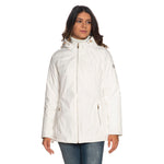 Exude effortless elegance with the Yes Zee women’s down jacket, a harmonious blend of functionality and style. This chic white jacket features a snug hood and convenient zip closure, complemented by two front pockets for your essentials plus an extra inside pocket. The adjustable drawstring at the bottom ensures a perfect fit, showcasing your silhouette while keeping you warm. Indulge in the luxury of comfort with this must-have piece for your wardrobe.
