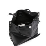 black foldover top turn-clasp fastening two flat top handles metal feet A'Spasso medium leather handbag Size and Fit - Width 13,78 in / 35 cm