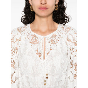 white rear zip fastening front lace-up fastening drawstring waist long puff sleeves Coco lace midi dress Size and Fit - This piece fits true to size. We recommend you get your regular size. Model is 1,75m / 5ft 8in wearing size 1 (NUM)